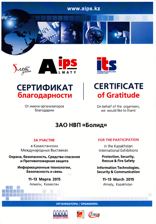 5-я Юбилейная Казахстанская международная выставка «Охрана, безопасность, средства спасения и противопожарная защита» (11 - 13 марта 2015 г., Казахстан, г. Алматы, выставочный комплекс «Атакент»)