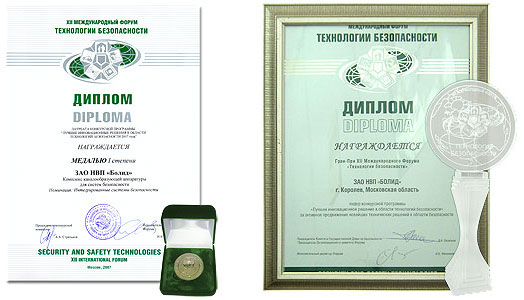Компания "Болид" получила дипломы и призы на завершившемся XII Международном Форуме "Технологии безопасности 2007"