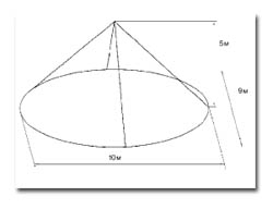 С2000-ПИК, предназначенные для установки на потолке. Особенностью извещателя является повышенная надежность обнаружения движения нарушителя. Это обеспечивается применением в извещателе двух двухплощадных пироприемников и специальной линзы Френеля. Программная обработка сигналов от пироприемников повышает достоверность обнаружения и сокращает вероятность ложного срабатывания. Потолочная установка охранного ИК извещателя позволяет обеспечить стабильность зоны обнаружения при перепланировке рабочих мест, перестановке мебели и т.п. работах, в результате которых отдельные участки помещения могут остаться вне поля зрения извещателя. Форма зоны обнаружения извещателя приведена на рисунке: