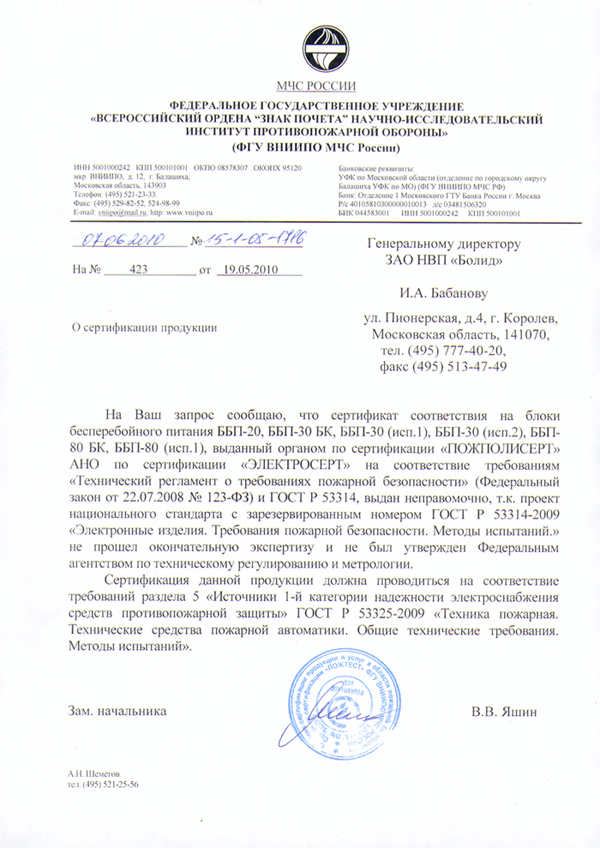 Желая разъяснить ситуацию с текущими требованиями по процедурам сертификации пожарной продукции, мы обратились с запросами в МЧС России и ФГУ ВНИИПО МЧС России. Пользуясь случаем, мы хотели бы поблагодарить эти организации за понимание и проявленную оперативность. Из ВНИИПО МЧС России был получен ответ о том, что