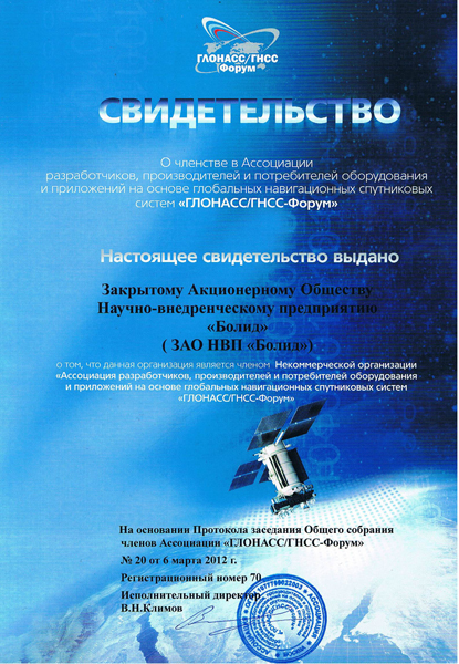 ![]() | Компания ЗАО НВП "Болид" принята в Действительные члены Ассоциации разработчиков, производителей и потребителей оборудования и приложений на основе Глобальных навигационных спутниковых систем "ГЛОНАСС/ГНСС-Форум". Это свидетельствует о значительном вкладе компании "Болид" в разработку систем спутниковой навигации. Система "ОРМА" занимает достойное место среди других систем навигации, обладает точностью позиционирования, простотой установки и освоения, гибкой настройкой под задачи пользователя. |