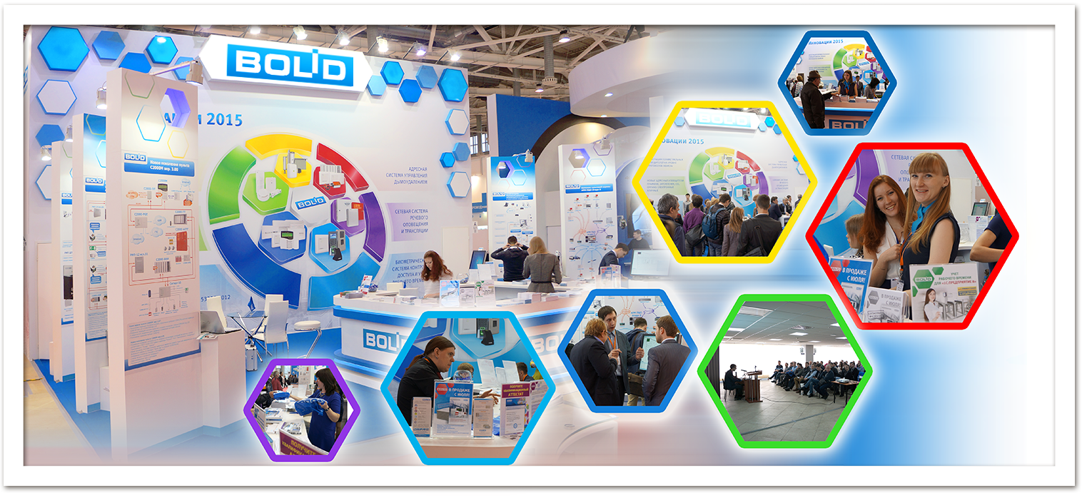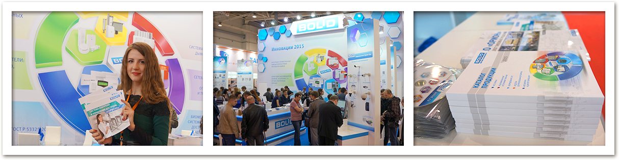 К выставке были полностью обновлены все каталоги компании "Болид": "Каталог продукции 2015", "Система контроля и управления доступом "Орион", "Каталог типовых решений "ИСО "Орион", "Справочник монтажника ИСО "Орион", "Каталог типовых конфигураций "С2000-Т", "Комплекс пультовой охраны АРМ ПЦО "Эгида-3", "Система автоматизированного учета расхода ресурсов АРМ "Ресурс".