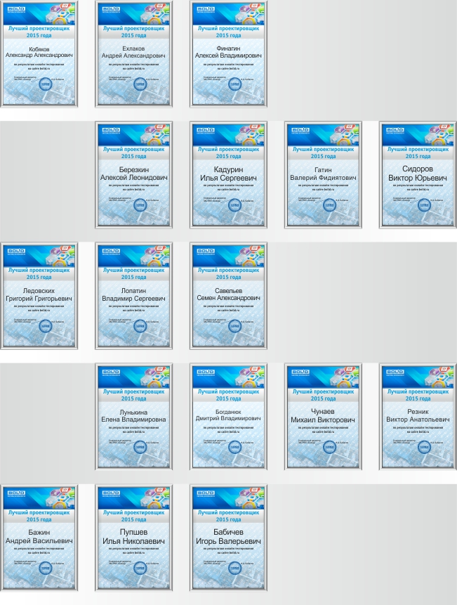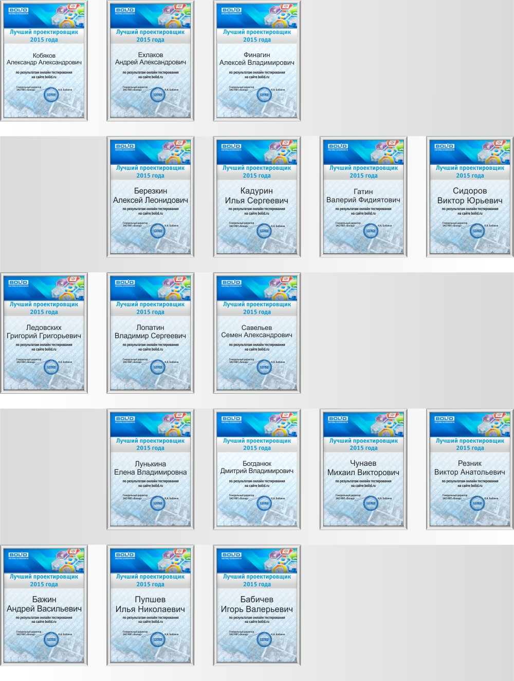 Специалисты, успешно прошедшие тестирование и получившие наибольшее количество квалификационных аттестатов, получат в подарок Юбилейный календарь компании "Болид". Они также награждаются почетным званием - "Лучший проектировщик 2015 года".