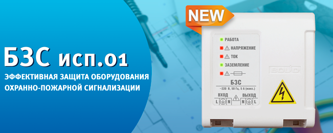 Блок защитный сетевой БЗС исп.01 применяется в электрических сетях (~230 В, 50 Гц) для защиты оборудования охранно-пожарной сигнализации с потребляемой мощностью до 1,2 кВА (ток до 5 А) от длительных перенапряжений и высоковольтных импульсных помех.