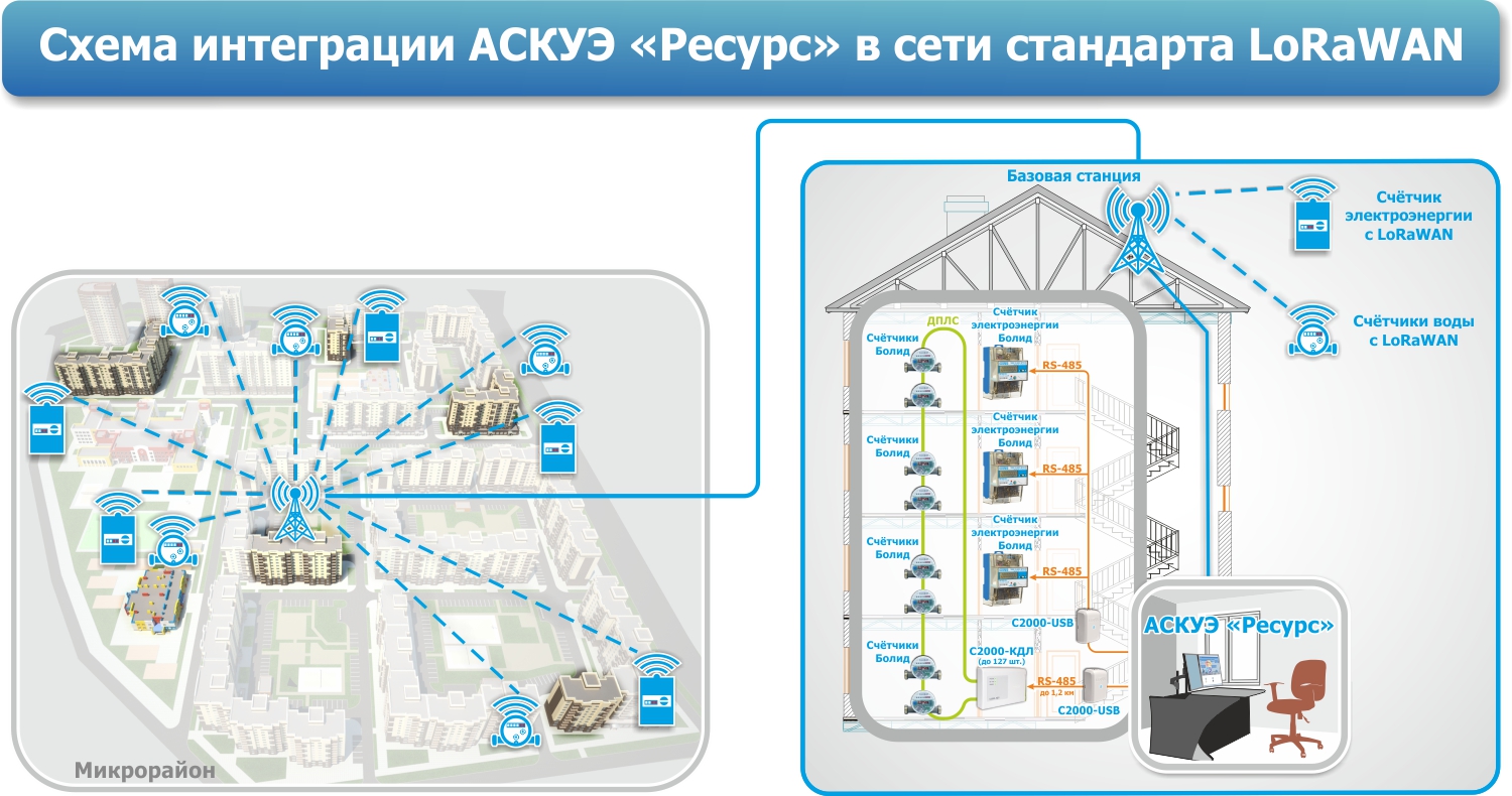 Информируем инсталляторов систем учета ресурсов, что АСКУЭ "Ресурс" интегрирована в беспроводные сети стандарта LoRaWAN!