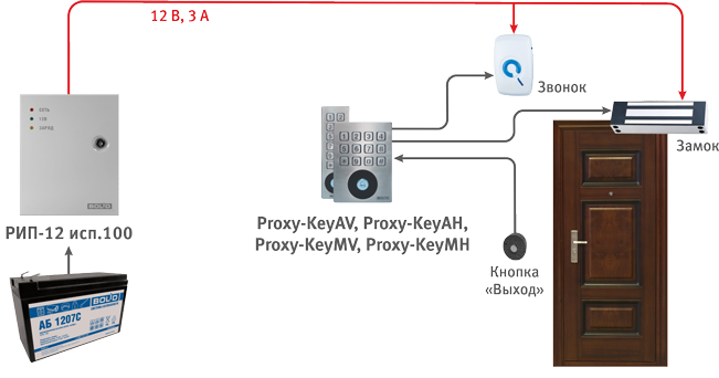 РИП-12 исп.100: питание устройств номинальным напряжением 12 В, выходной ток 3 А