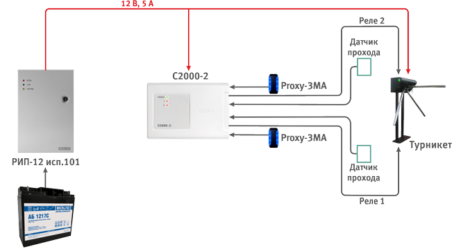 РИП-12 исп.101: питание устройств номинальным напряжением 12 В, выходной ток 5 А