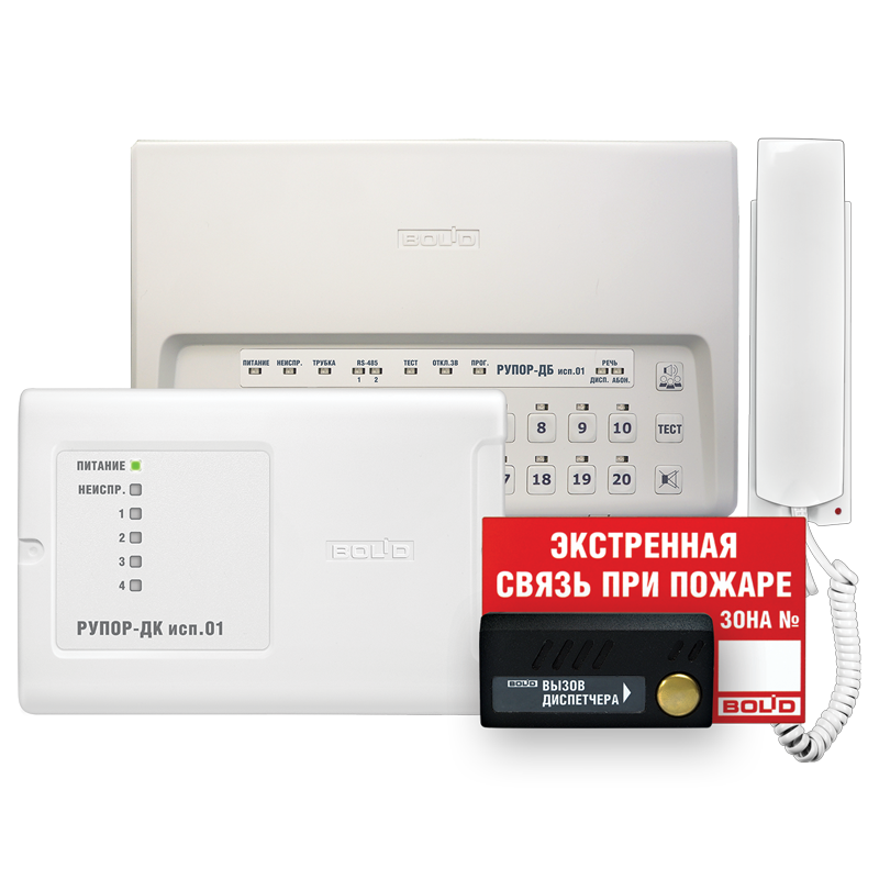 Комплекс «Рупор-Диспетчер исп.01» предназначен для обеспечения двунаправленных каналов связи зон пожарного оповещения с помещением пожарного поста-диспетчерской при организации СОУЭ 4-го и 5-го типов согласно СП 3.13130.2009.