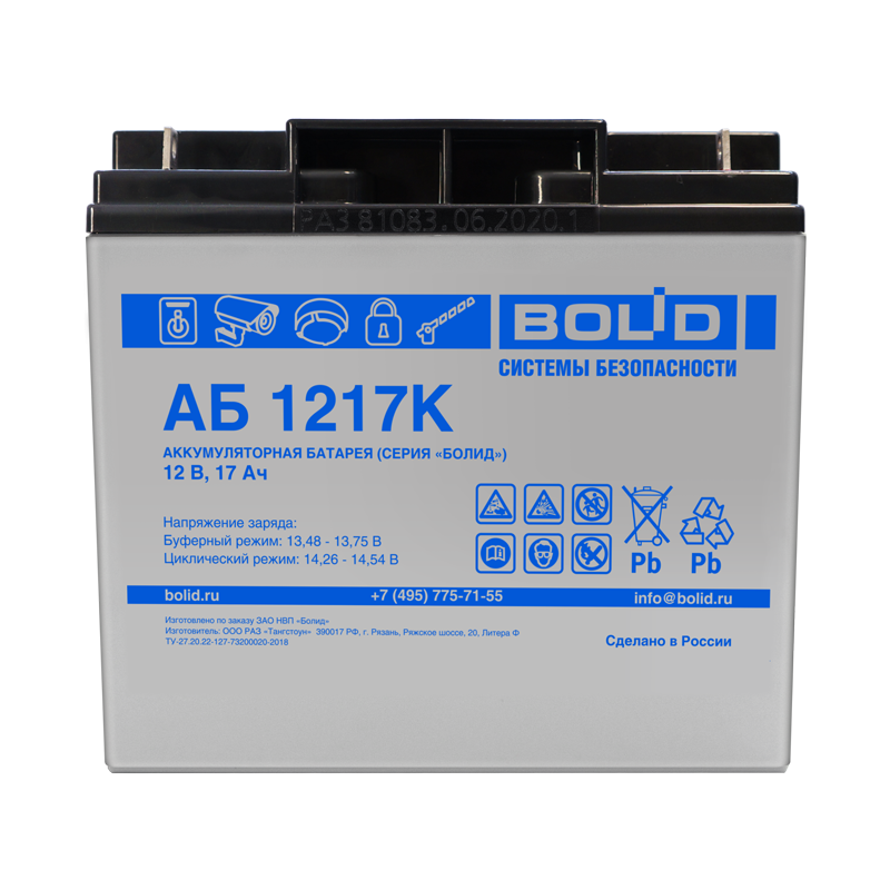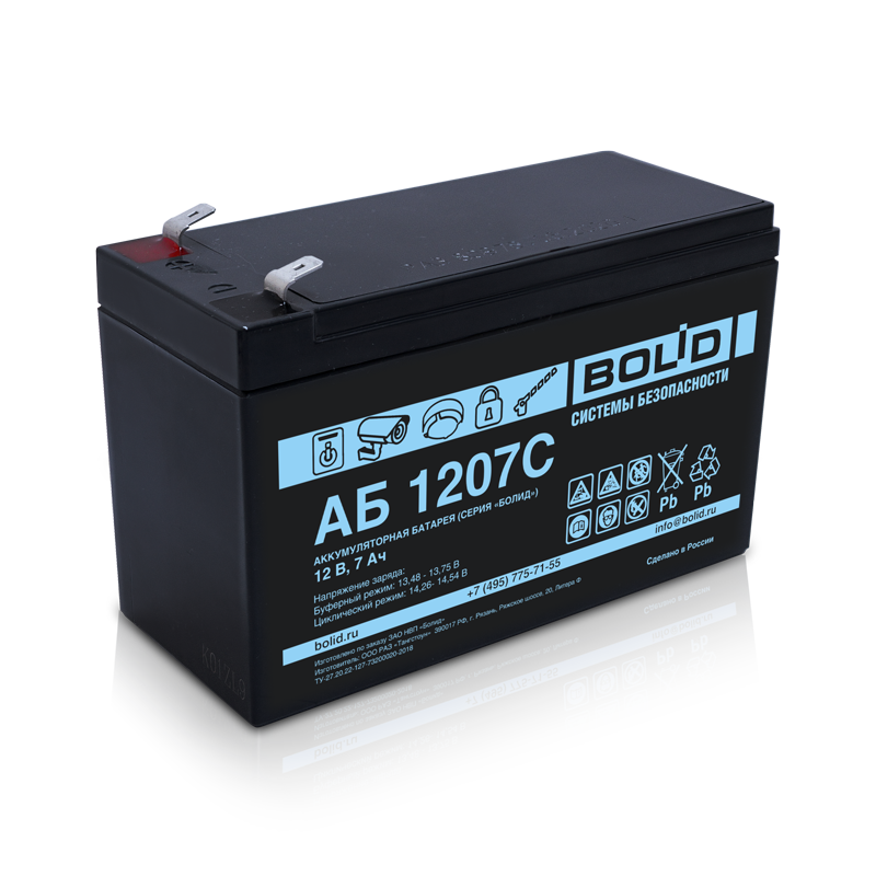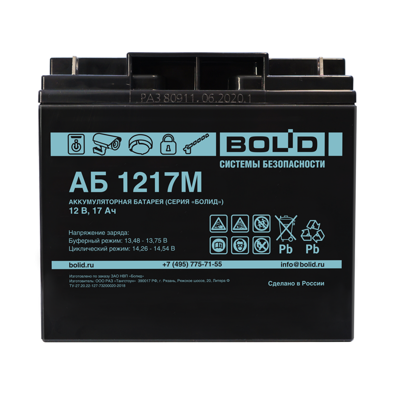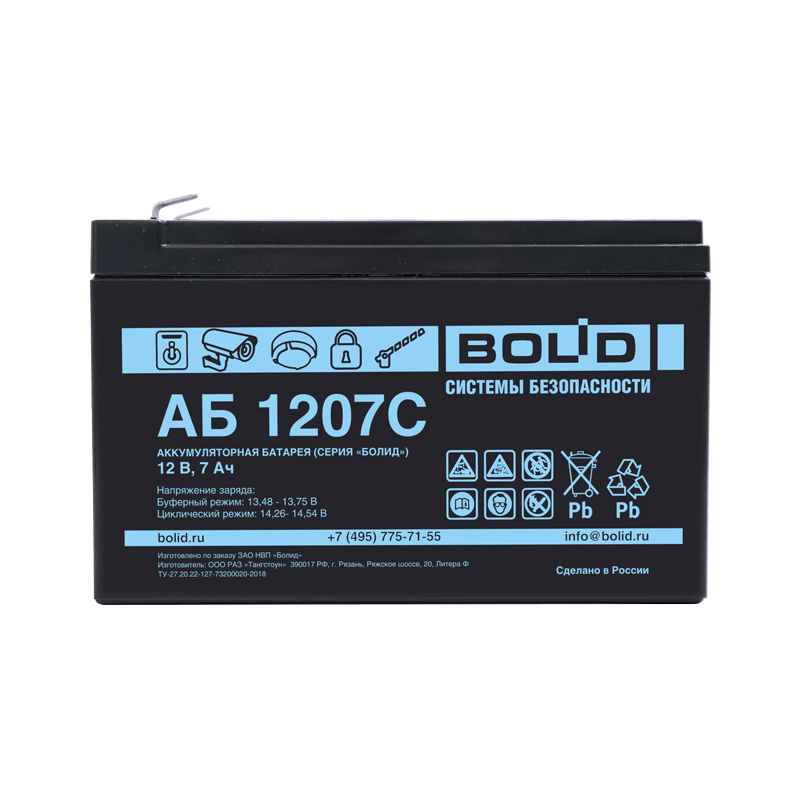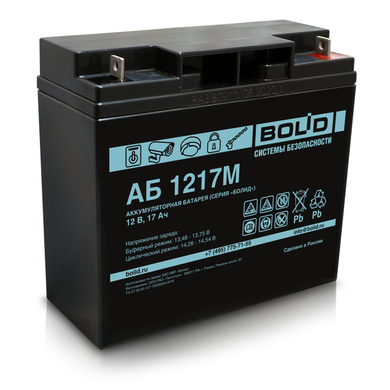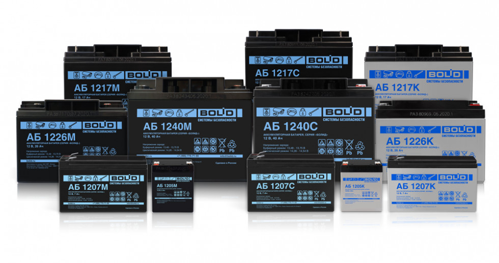Серия "Болид", типНом.напряжение, ВНом. ёмкость, Ач Длина, ммШирина, ммВысота, ммМасса, кг