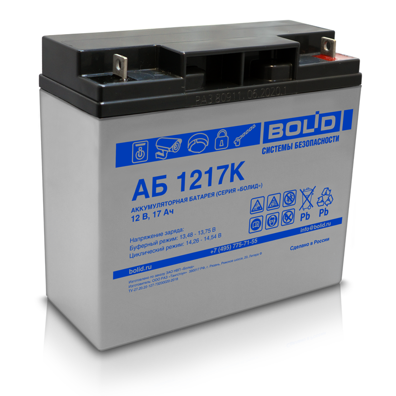 Аккумулятор 12 В, 17 А*ч (АБ 1217К) срок службы 5 лет (Тип К), шт.7 410купить