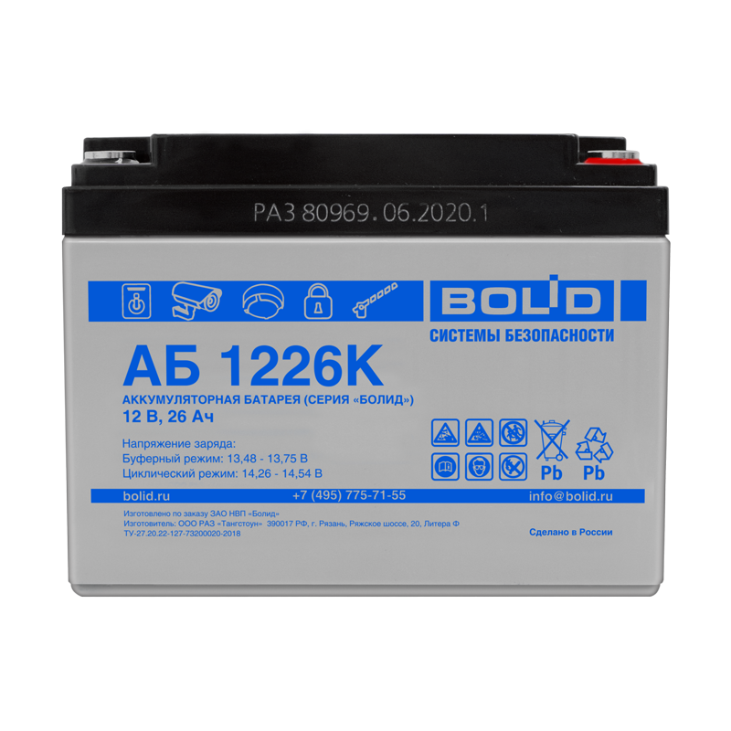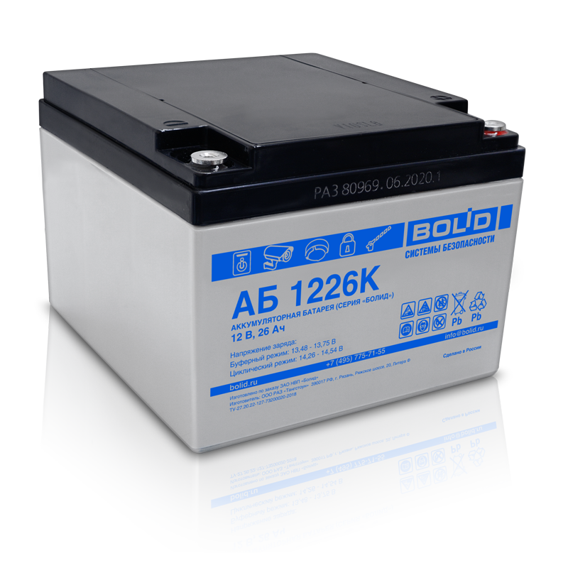 Аккумулятор 12 В, 26 А*ч (АБ 1226К) срок службы 5 лет (Тип К), шт.10 389купить