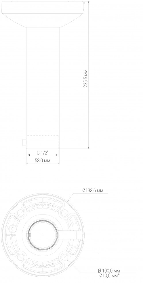 Кронштейн предназначен для потолочного крепления камер наружного видеонаблюдения.