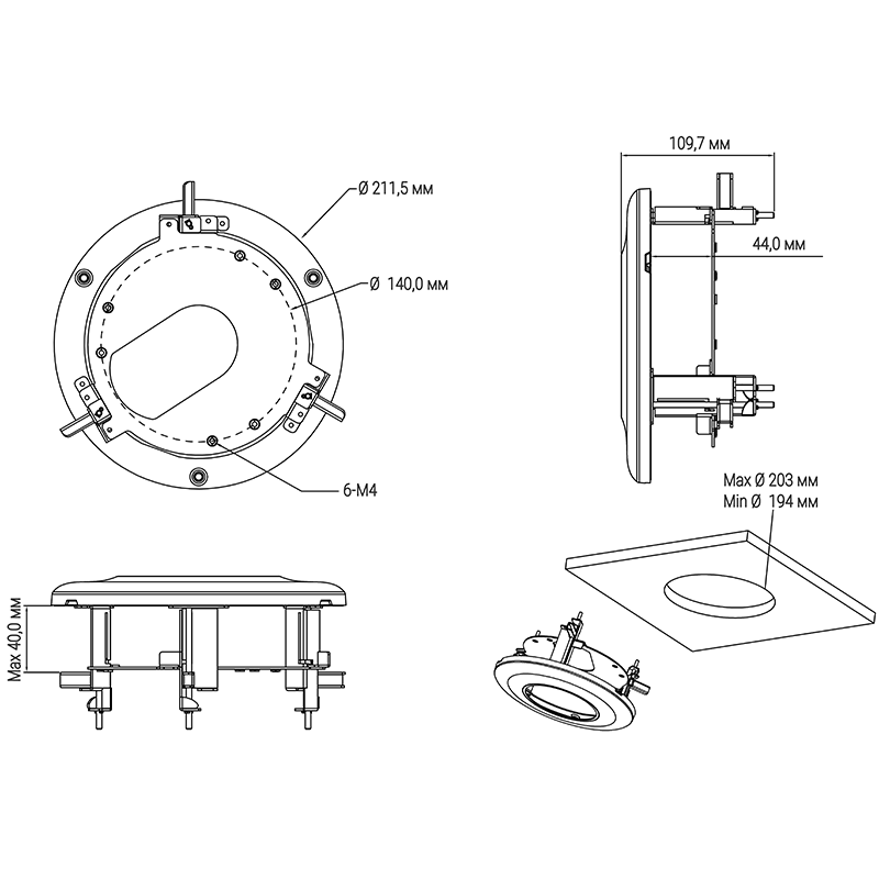 Кронштейн предназначен для потолочного крепления купольных видеокамер
