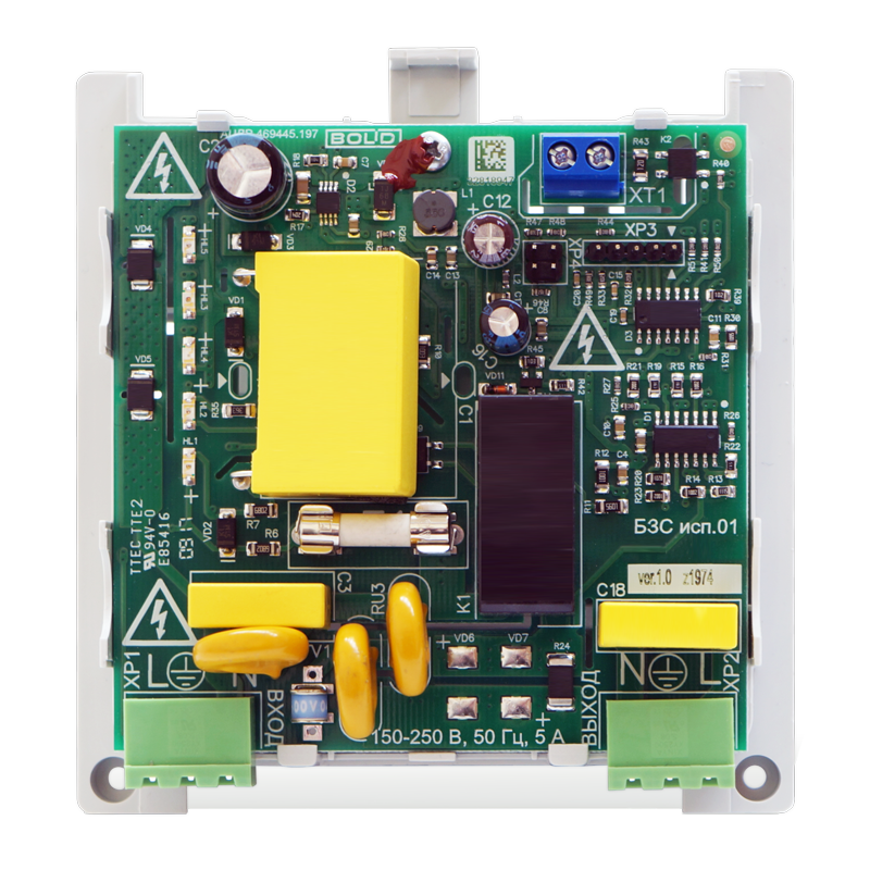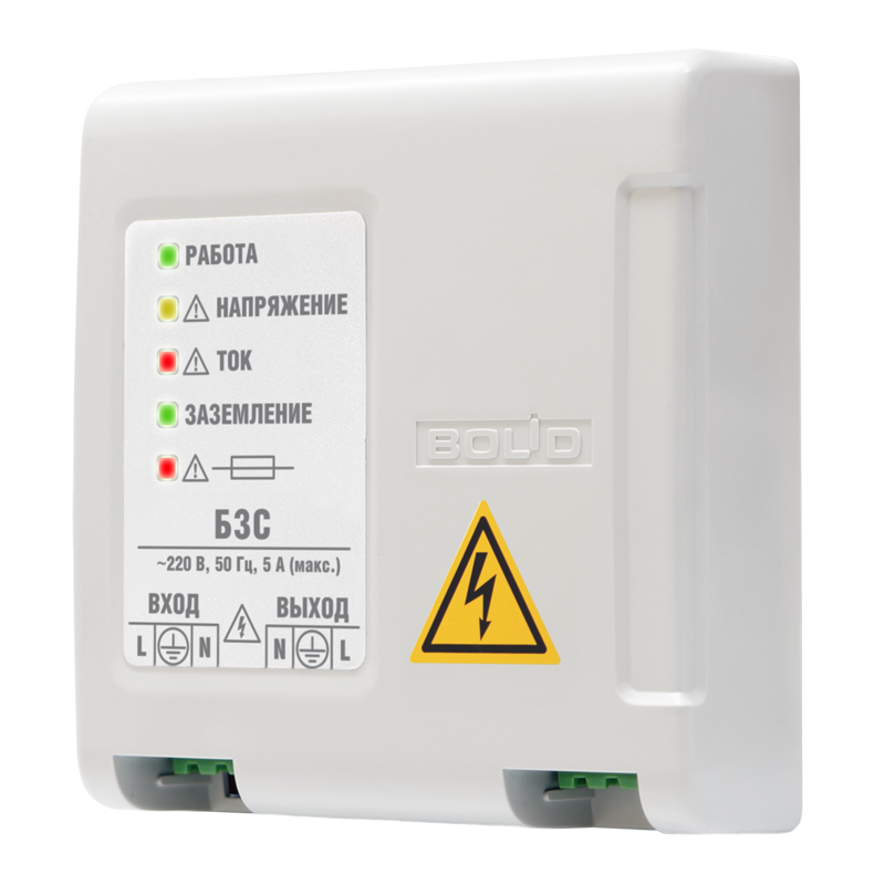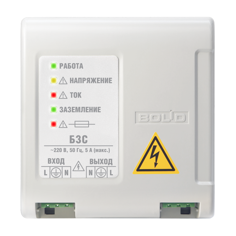 Блок защитный сетевой БЗС исп.01 применяется в электрических сетях (~230 В, 50 Гц) для защиты оборудования охранно-пожарной сигнализации с потребляемой мощностью до 1,2 кВА (ток до 5 А) от длительных перенапряжений и высоковольтных импульсных помех.