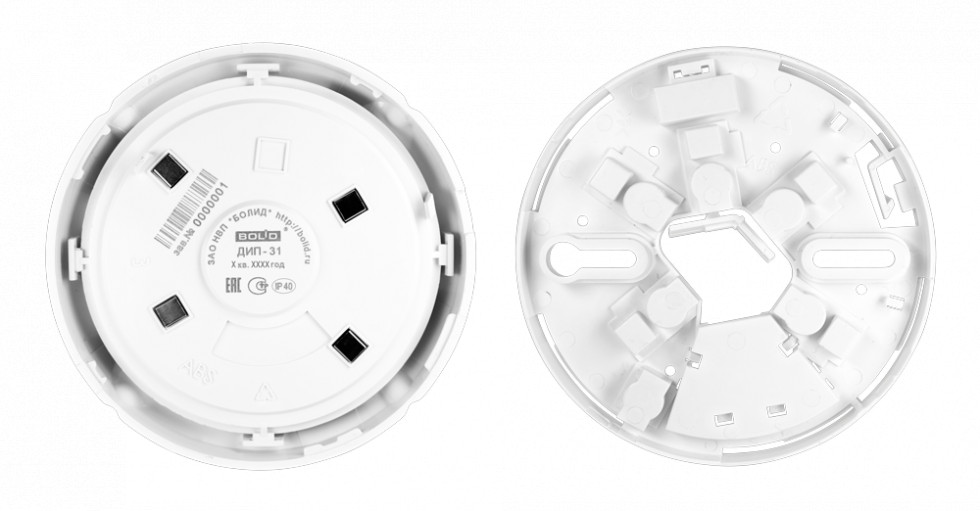 МК-2"МК-3" — устройство, которое пружинными скобами фиксирует извещатель с фланцем в фрагменте подвесного потолка. Розетка извещателя крепится к фланцу двумя саморезами. Нельзя надеть защитный колпачок из комплекта извещателя.