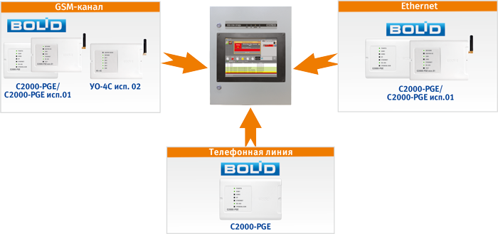 - Устройство оконечное объектовое системы передачи извещений по телефонной линии, сетям GSM и Ethernet (ПОО) С2000-PGE АЦДР.437252.001