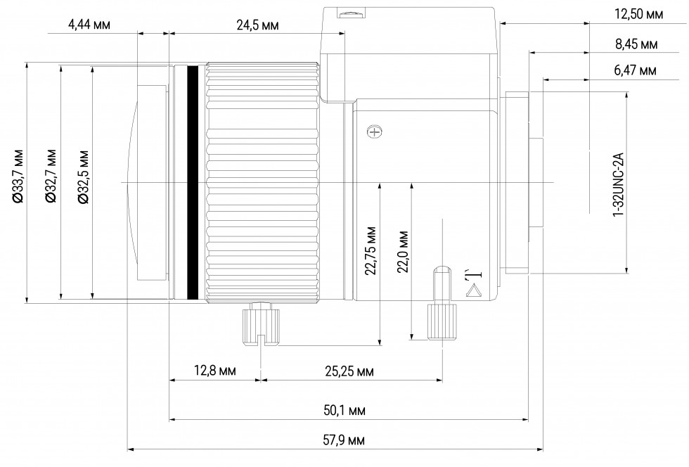 • Объектив предназначен для работы с сетевыми и аналоговыми видеокамерами с разрешением до 6 мегапикселей и матрицей 1/2.7"