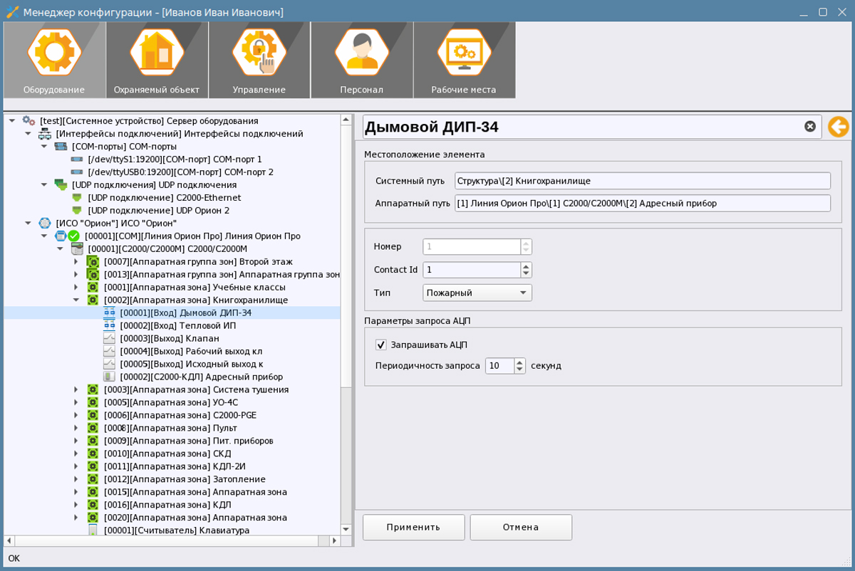- Описывать физическую структуру системы охраны: приборы, линии подключения, набор аппаратных зон сетевых контроллеров