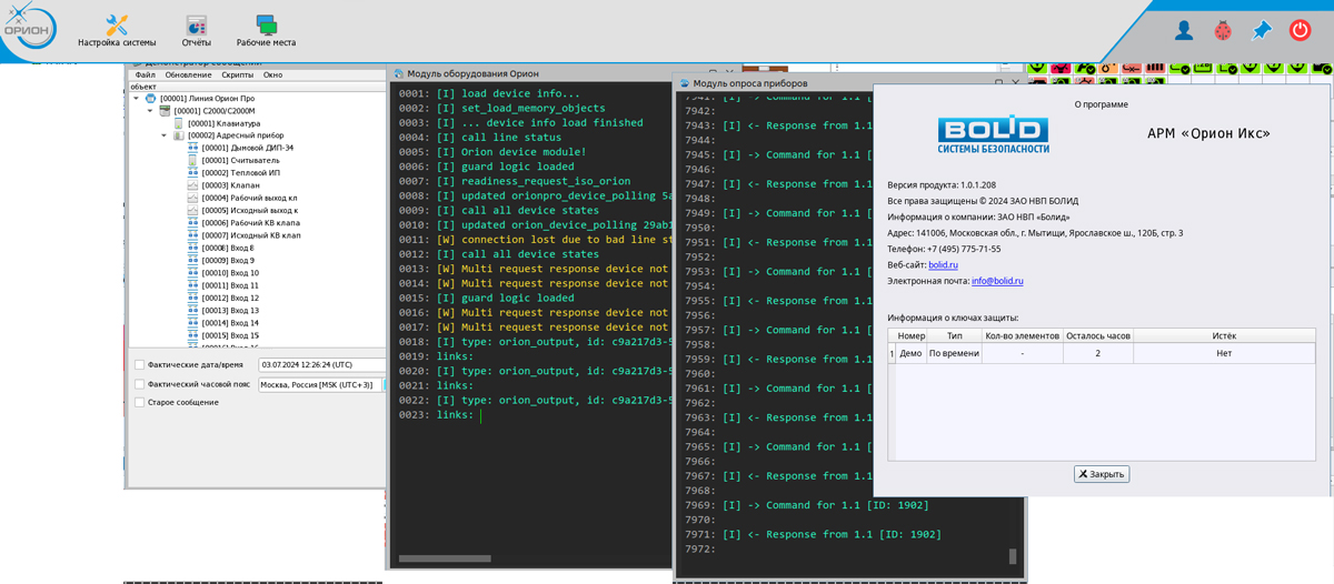 - ПО поддерживает работу с приборами ИСО «Орион»: