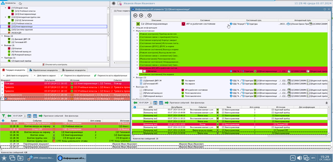 - Создание рабочего места оператора разных систем безопасности: охраной сигнализации и пожарной сигнализации