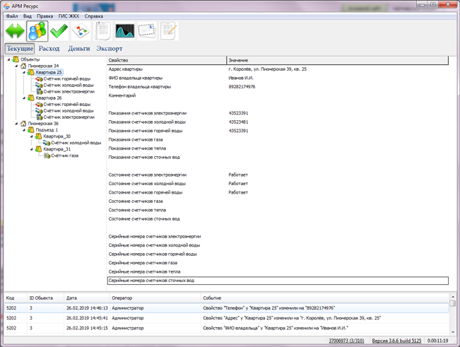Программное обеспечение АРМ "Ресурс" предназначено для ведения учета потребления ресурсов: холодной, горячей воды, природного газа, электроэнергии и тепловой энергии в сфере ЖКХ и на промышленных объектах. ПО может работать как непрерывно, так и запускаться по необходимости. Система сертифицирована как средство измерения.