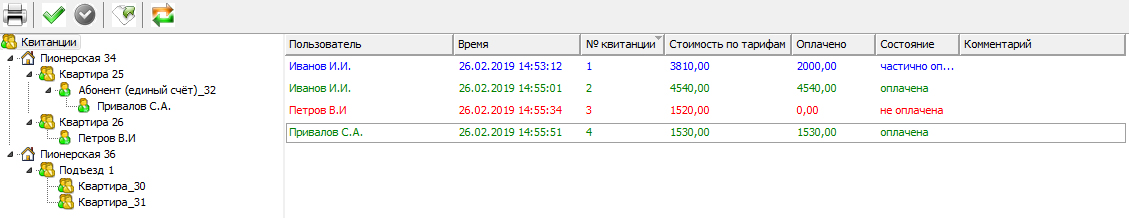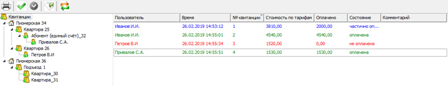 • Отображение выписанных квитанций
