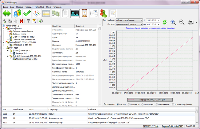 Простой, интуитивно понятный интерфейс, позволяет удобно работать с системой, просматривать показания и состояния счетчиков, печатать квитанции, следить за сведением баланса потребления ресурсов на объекте.
