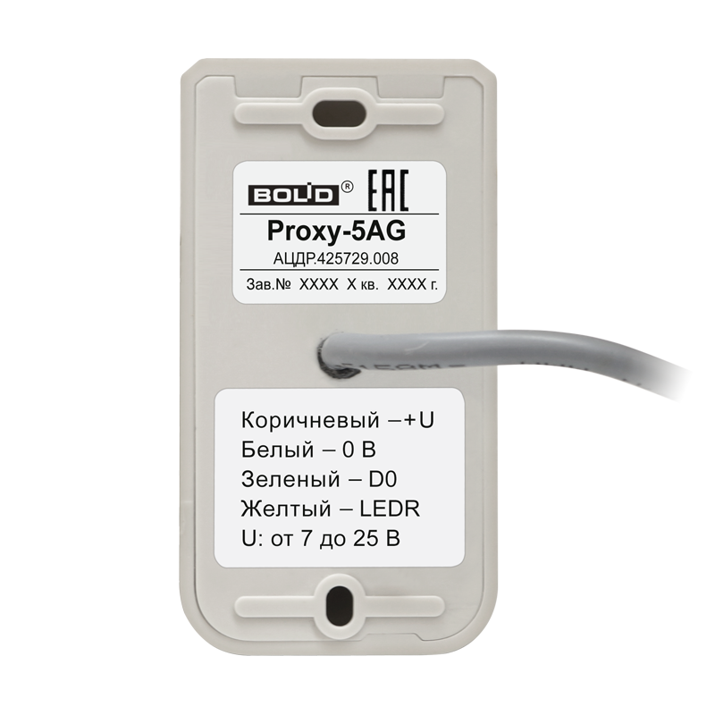 "Proxy-5AG", "Proxy-5AB" предназначены для считывания кода с идентификационных карточек и передачи его на приборы приемно-контрольные или контроллеры СКУД. В ИСО "Орион" используются для обеспечения процедур управления шлейфами и разделами охранно-пожарной сигнализации и идентификации пользователей в точках доступа СКУД