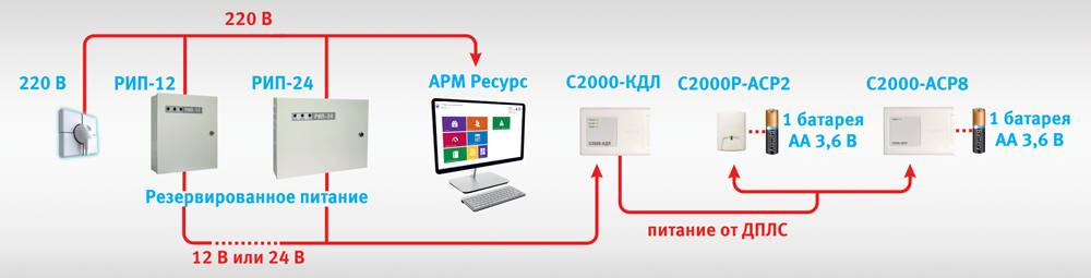 Количество подключаемых каналов в АРМ «Ресурс» зависит:Приборы «С2000-АСР2» и «С2000-АСР8» не требуют отдельного питания и питаются от контроллера «С2000-КДЛ» по линии ДПЛС.
