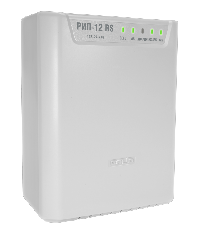 12В, 2А (мах 3А); емкость АБ 7Ач; световая индикация; звуковая сигнализация; датчик вскрытия корпуса; защита: от перенапряжения, от КЗ, от переполюсовки АБ; интерфейс RS-485; пластиковый корпус, не поддерживающий горение.