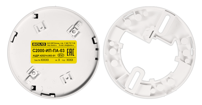 | Габаритные размеры извещателя вместе с розеткой | диаметр 100 мм высота 47 мм |