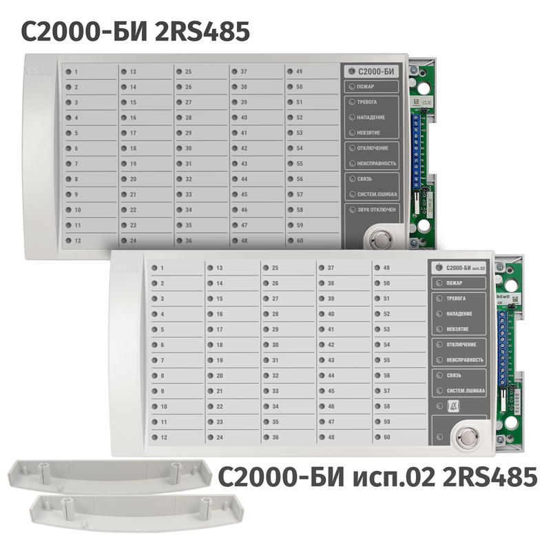 Блоки индикации С2000-БИ 2RS485, С2000-БИ исп.02 2RS485 предназначены для совместного использования с сетевым контроллером (пультом контроля и управления охранно-пожарным С2000М или прибором приёмно-контрольным и управления пожарным Сириус или их исполнениями) для обеспечения световой и звуковой индикации состояния разделов охранной и пожарной сигнализации, а так же исполнительных устройств пожарного оборудования.