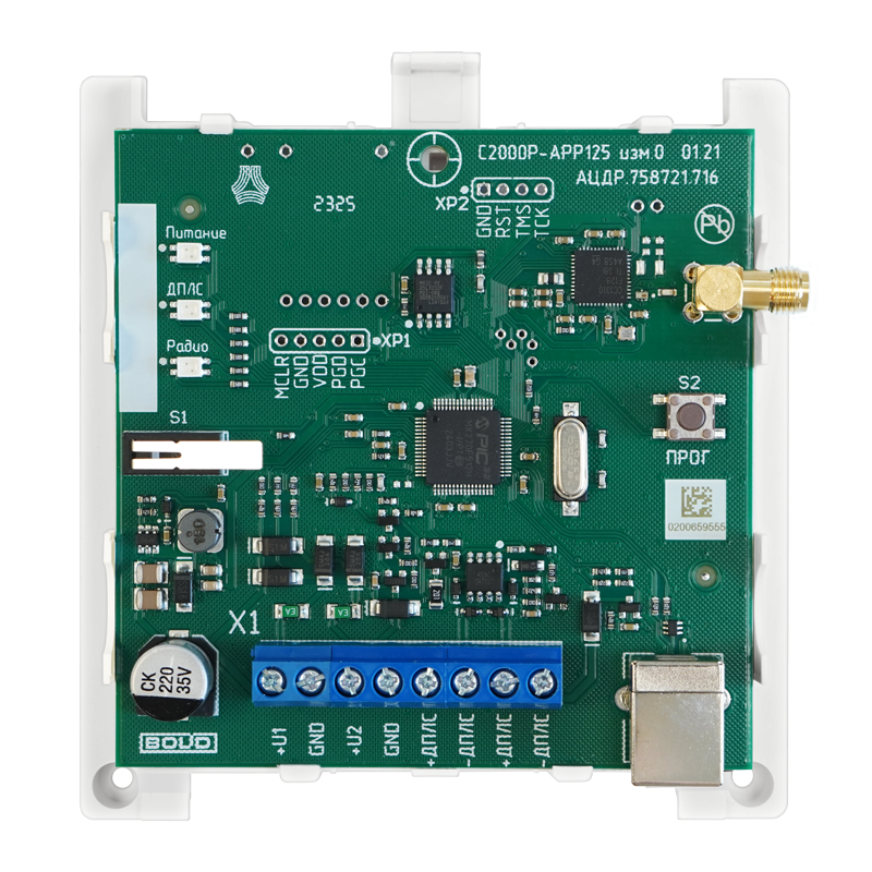 | Подключение к ПК | Прямое подключение «С2000Р-АРР125» к ПК осуществляется через интерфейс USB | |