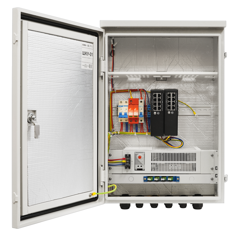 ШКУ-01 предназначен для установки телекоммуникационного и прочего электротехнического оборудования. ШКУ-01 обеспечивает защиту установленного внутрь оборудования от воздействия окружающей среды и несанкционированного доступа.