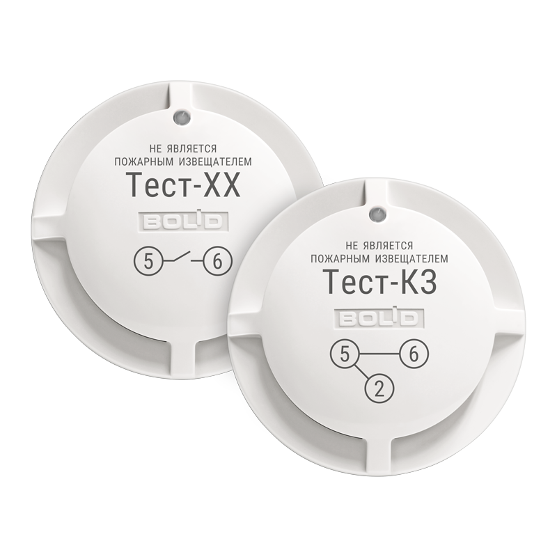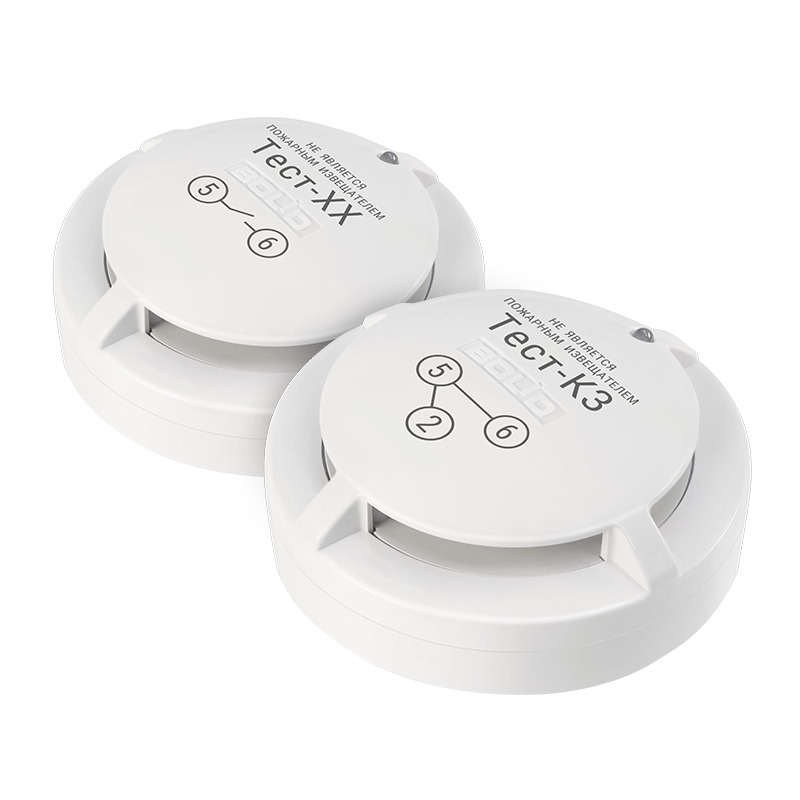 В состав комплекта входит два прибора: Тест-КЗ, Тест-ХХ. Проверка происходит путём кратковременной (на время испытаний) установки прибора в базу пожарных извещателей.