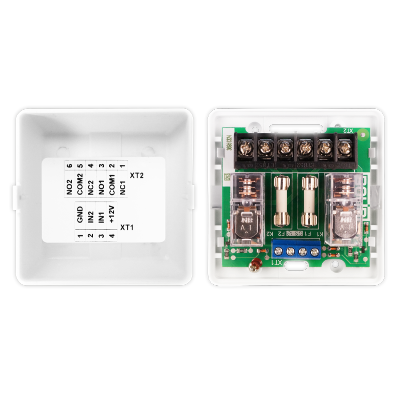 Устройство содержит два реле с переключающими контактами и схему управления, позволяющую включать реле сигналом уровня логическая «1» (+ 5В КМОП). Используется совместно с контроллером доступа «С2000-2», работающим в режиме «Шлагбаум», для управления светофором, а также коммутации исполнительных устройств системах охранно-пожарной сигнализации и контроля доступа.