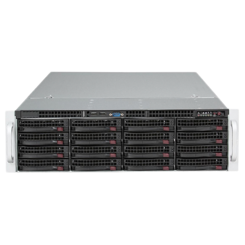Серверный корпус 19” 3U (437x132x647 мм), Astra Linux SE «Орёл», полезный архив ёмкостью 260 Тб SAS – аппаратный RAID 6 по умолчанию (жёсткие диски HDD в комплекте с сервером), 3хMini DisplayPort.