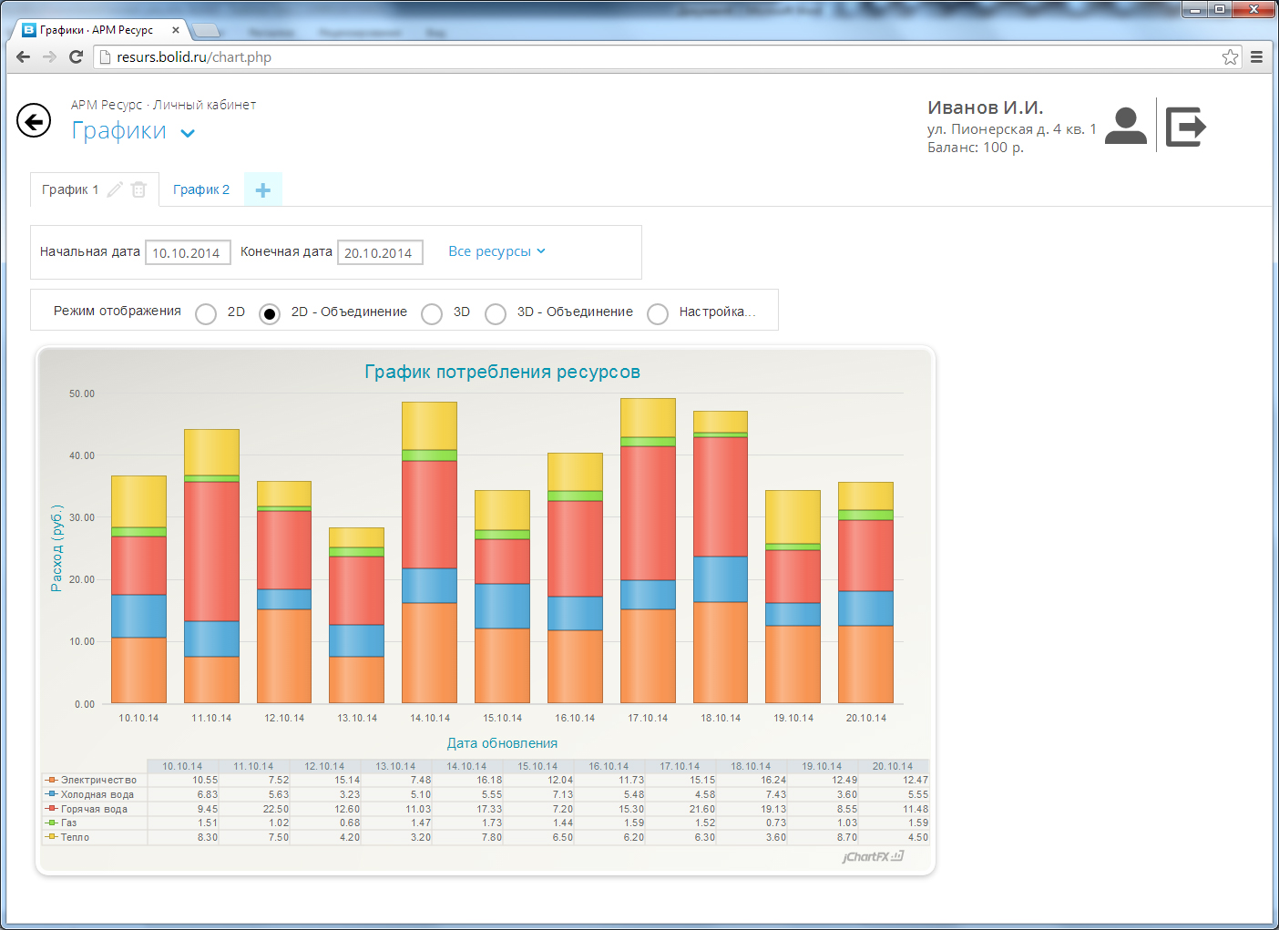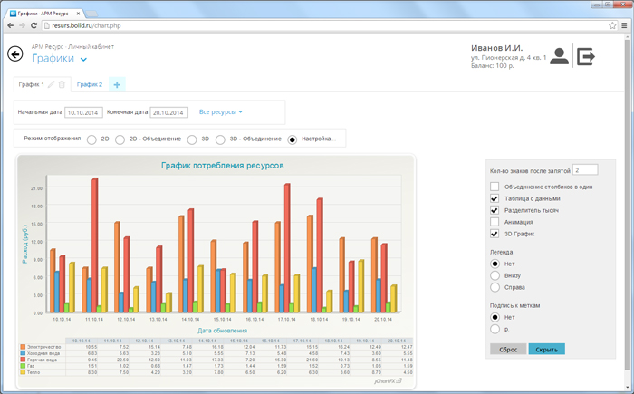 Построение графиков на основе посуточной истории расхода или истории выписки квитанций.