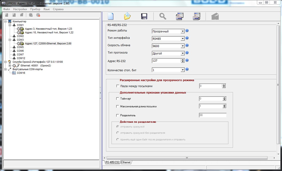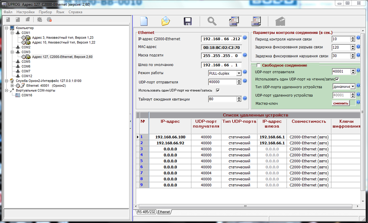 Настройка для С2000-Ethernet версии 2.6: