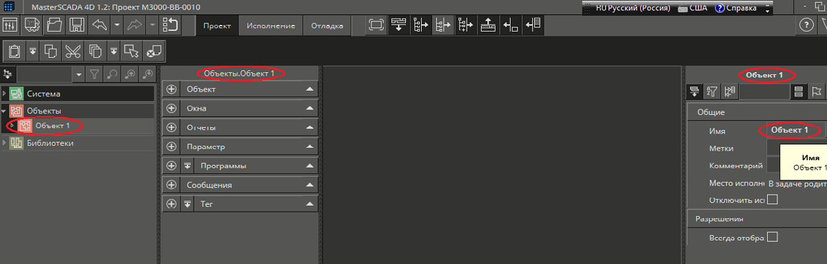 После добавления объекта в проект появляется объект с именем Объект 1, представленный на рис. 8а. Желательно, чтобы каждое имя объекта в проекте несло смысловую нагрузку. Назовём новый объект mod_ВВ-0010.Рис. 8а. Присвоение объекту имени.