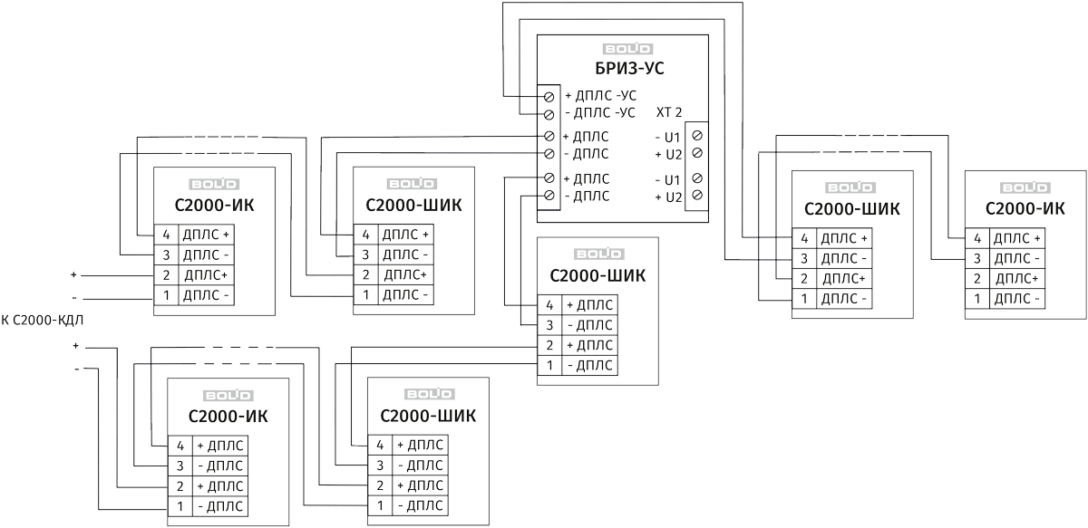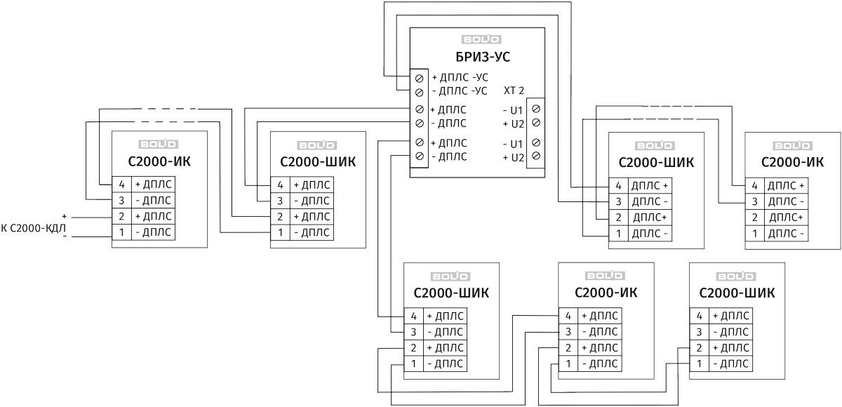 Варианты топологии двухпроводной адресной линии связи в ИСО "Орион"