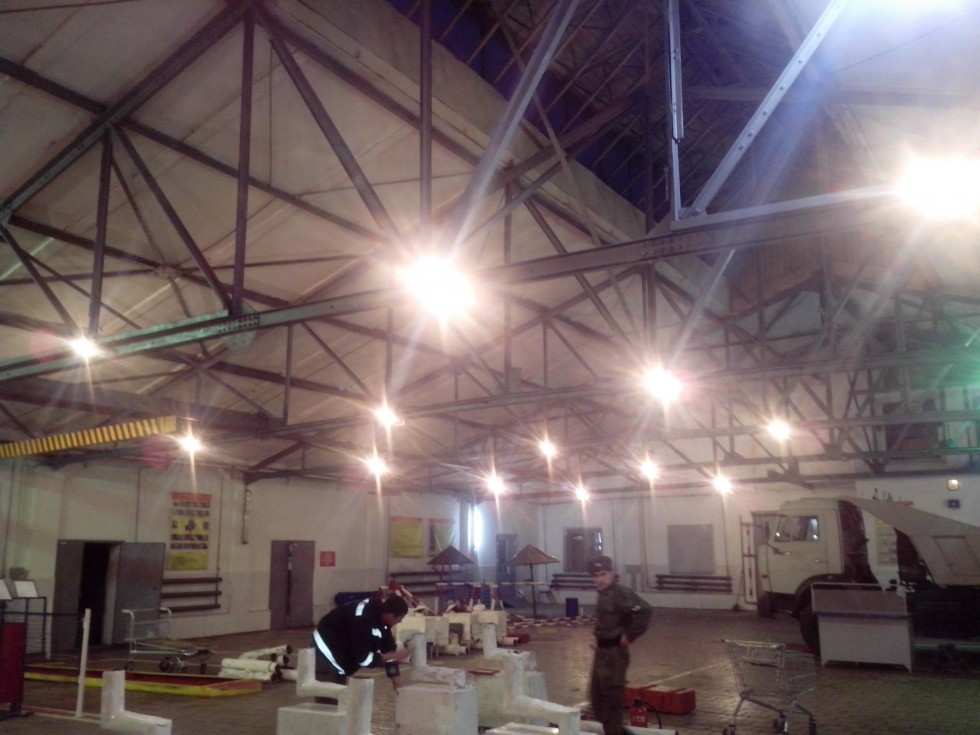 Территория представляет собой разрозненные объекты соединенные между собой интерфейсом RS485. В Каждом здании ставился самостоятельный Сигнал-10, далее их связывали с другим прибором по интерфейсу, и далее на пульт С2000М. Чтобы военные долго не думали, что нажимать и как сбросить, в каждом боксе установили считыватели для ключей (ключи привязали проволокой к приборам) и на центральном КПП установили БКИ.