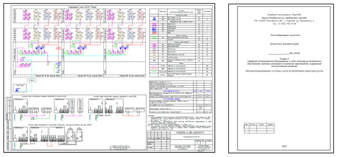 Типовой проект АСКУЭ "Ресурс" МКД. Проводная схема с приборами учета под ТМ BOLID (1 Mб)