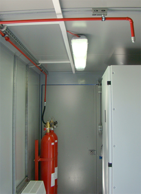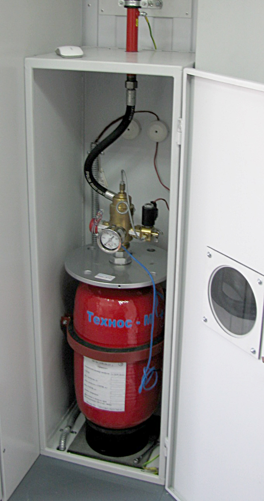 Применение различных блок-боксов, мобильных зданий, контейнеров в последнее время получает все более широкое распространение. В подобного рода конструкциях размещаются дизельные электростанции, автономные источники питания, аппаратура связи, насосные станции, другое электротехническое и технологическое оборудование. Благодаря своей мобильности и автономности такие сооружения контейнерного типа стали популярны в нефтегазовой отрасли, у энергетиков, геологов, строителей, военных. В силу того, что на относительно небольших площадях контейнеров компактно сосредоточено дорогостоящее оборудование, помещения такого плана нуждаются в надежной защите от возгораний и пожаров. Наиболее полно выполнить эту задачу могут автоматические установки газового пожаротушения. В качестве огнетушащего вещества в этих установках применяются химически неагрессивные, легко удаляемые газовые составы, которые не только создают в защищаемом объеме концентрацию, не поддерживающую горение, но и, при этом, не наносят ни малейшего ущерба аппаратуре и оборудованию, находящимся в контейнере.