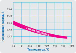 Разработчики РИП позаботились не только о диспетчеризации, но и об увеличении времени работы аккумуляторной батареи, устанавливаемой внутрь источника питания, посредством термокомпенсации заряда. Эта функция РИП позволяет в некоторых случаях вдвое увеличить фактический срок службы аккумуляторной батареи. Стоит отметить, что другие существующие сейчас на рынке источники питания такой особенности не имеют. Термокомпенсация представляет собой корректировку напряжения заряда аккумуляторной батареи в зависимости от температуры окружающей среды. Чаще всего в системах безопасности используются необслуживаемые герметичные свинцово-кислотные батареи технологии AGM. Батарея представляет собой пластиковый ударопрочный корпус, разделенный на отдельные секции, с катодно-анодной "начинкой". Технология AGM использует пропитанный жидким электролитом пористый заполнитель отсеков корпуса из стекловолокна. Микропоры этого материала заполнены электролитом не полностью. Свободный объём используется для рекомбинации газов. В верхней части крышки аккумулятора размещены резиновые перепускные клапаны, служащие для удаления газа, который может образоваться во время работы. Сверху перепускные клапаны плотно закрыты съёмной пластмассовой крышкой.