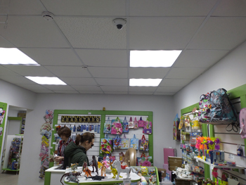 Очень часто для организации видеонаблюдения в бутике применяют сетевую купольную видеокамеру с объективом "рыбий глаз" (FishEye). Это действительно интересный экономный вариант с учетом возможностей такой видеокамеры.