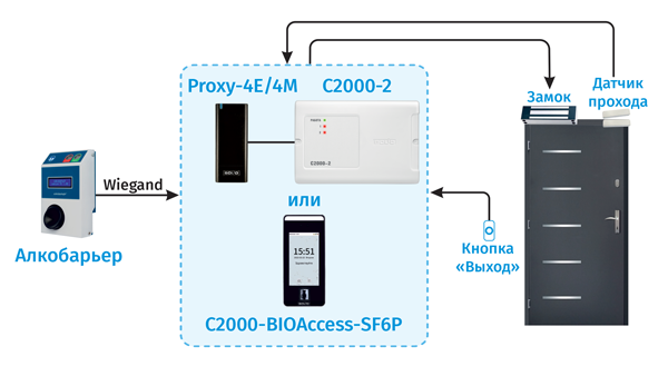Рис.2. Сетевая СКУД на проходной с алкотестированием