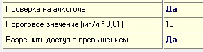 | 3 | 72 | содержание алкоголя превышено, но доступ предоставлен так как включен параметр «Пропускать пьяных» |