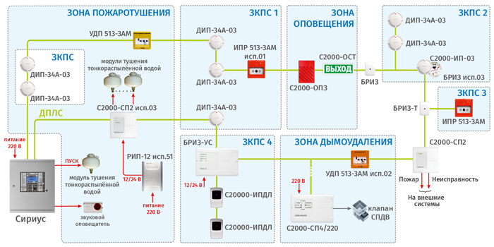 Для реализации выполнения этого требования в адресно-аналоговых СПС ИСО «Орион» на базе контроллера «С2000- КДЛ» и его модификаций: